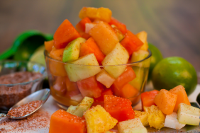 Tried it? Ate it? Be the first to review it! Mexican Fruit Cocktail Recipe. We see the fruit carts on the street corners with vendors who will cut to order fresh fruit topped with a spicy seasoning and drizzled with fresh limejuice. This is a refreshing snack that is the perfect combination of sweet, juicy, and spicy. Once you have fruit this way you might find yourself craving it on a daily basis.